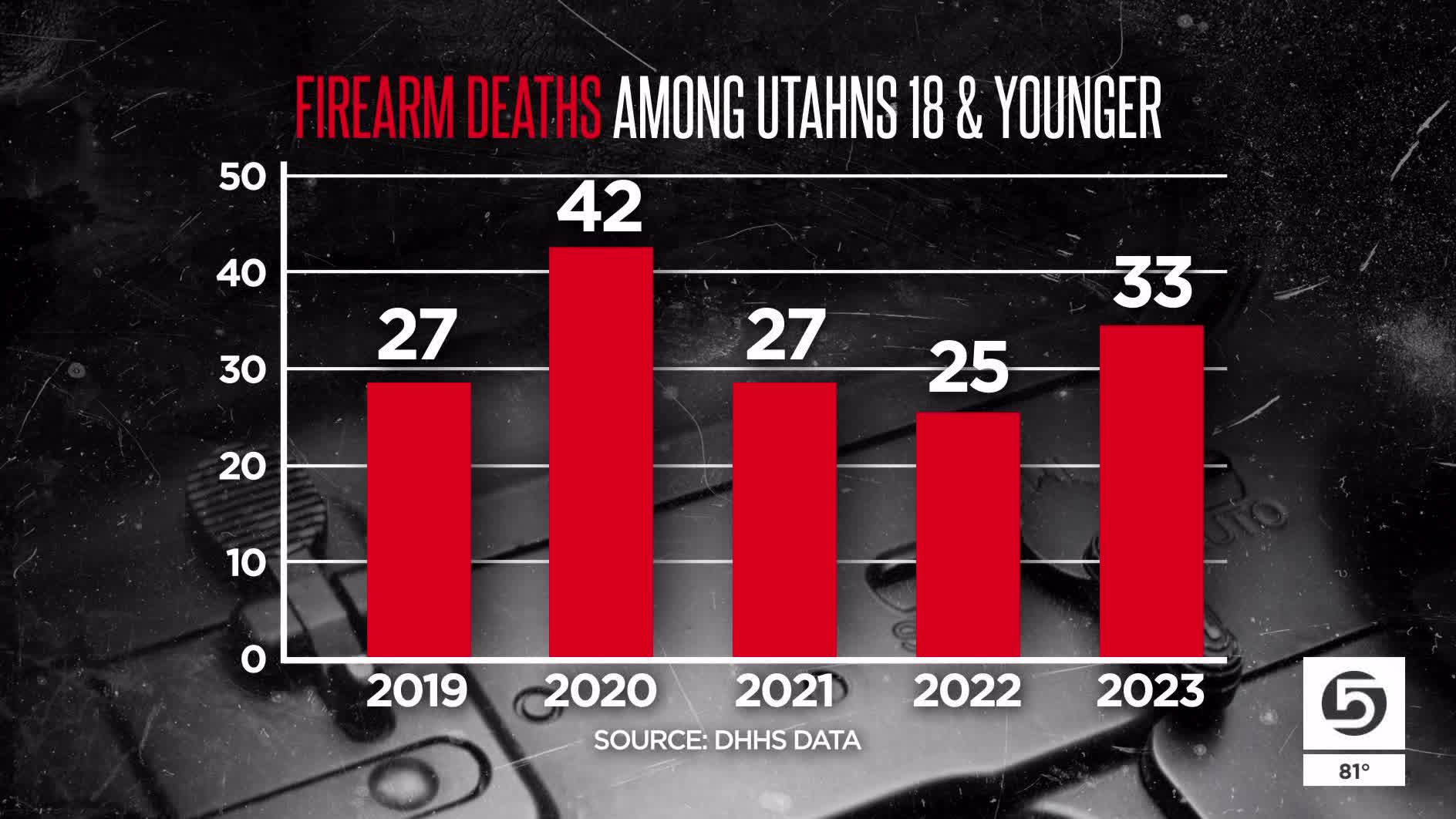 A 2022 KSL investigation found the number of Utah kids and teens dying by gunfire hit a record high of 42 in 2020.