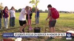A total of six health classes stepped outside the classroom to get their hands dirty by planting trees in honor of those who sacrificed their lives during the 9/11 terror attacks. They were also remembering fellow students.
