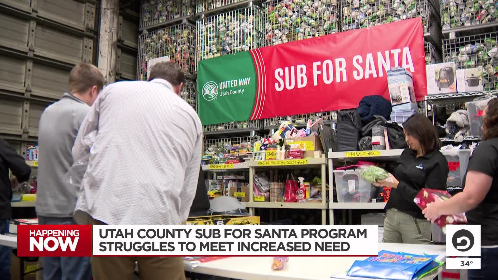 - The United Way of Utah County's Sub for Santa program faces unprecedented demand, with over 900 families still needing sponsors for gifts, clothing and books.