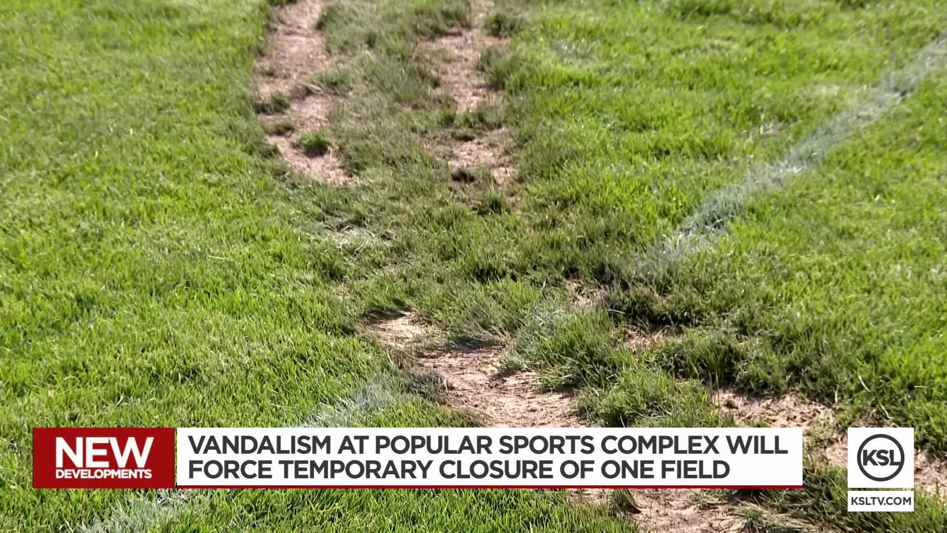 KAYSVILLE — One of the fields at Barnes Park, a well-used sports complex in Davis County, will be temporarily closed after vandals tore up the grass Wednesday night with what officials believe was an ATV or similar vehicle.