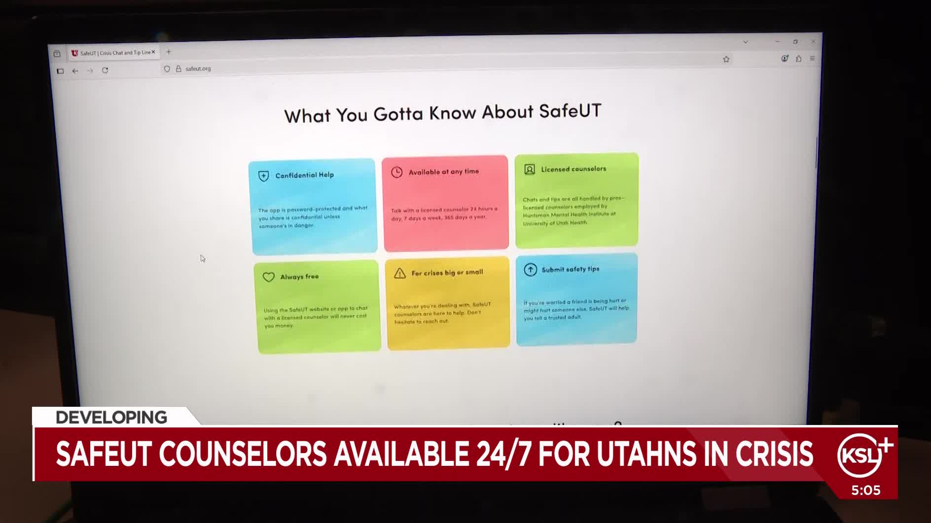 - The SafeUT app offers 24/7 mental health support to Utah students and families.