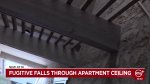 MIDVALE — A quiet Sunday evening turned into a chaotic scene at the Springs apartments in Midvale when a fugitive's escape attempt quite literally came crashing down through a neighbor's ceiling.