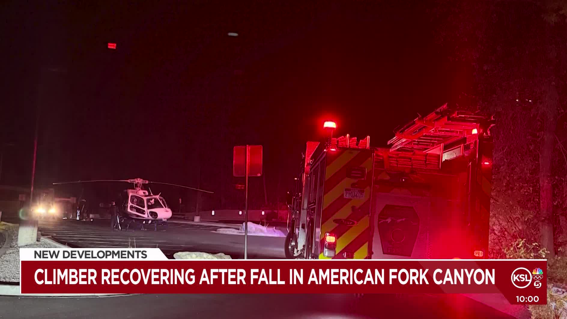 - A 37-year-old climber, Taz Wilcock, fell 40-50 feet in American Fork Canyon.