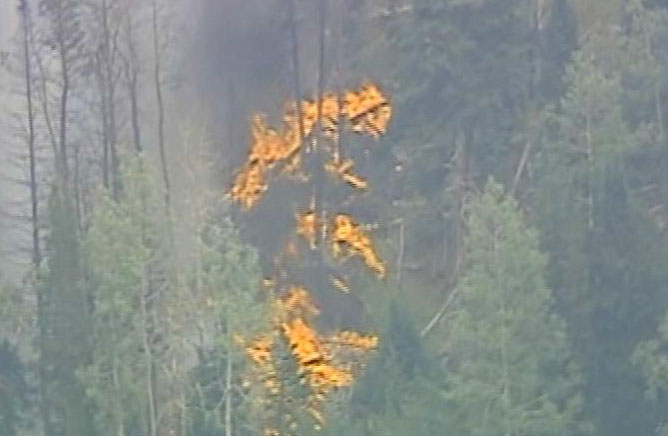 To hinder those fast runs down slope, heavy air tankers and helicopters dropped water and retardant on the fire all day Monday.