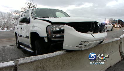 Several of the reported accidents were slide-offs, including one near 700 North. The driver of an SUV hit a patch of ice and slid into the barrier. A second car crashed while watching that accident.