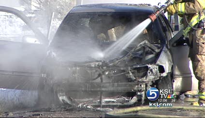 WEST VALLEY CITY -- A man and his two children were driving south on Interstate-215 in West Valley Monday morning when their car caught fire.