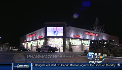 Police say he entered the store at 2090 E. 9400 South around 8 p.m. and walked straight to the pharmacy counter. There, the robber demanded the pharmacist give him OxyContin and motioned as though he was carrying a gun.