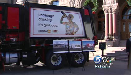 When the garbage trucks make the rounds in your Salt Lake neighborhood, you'll see messages wrapped around the trucks: "Underage drinking. It's garbage," and "The dreams of underage drinkers often wind up in here."