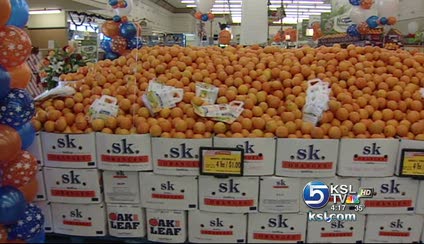 When they were all done, there were 322,000 oranges -- or 164,000 pounds -- on display. Store manager Brian Waddoups said he hopes the oranges won't be around long.