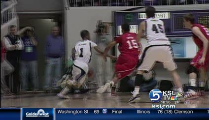 The Utes opened the game on a 9-0 run thanks to a 3-pointer from Kim Tillie, who led Utah with 20 points and 10 rebounds, and then two more 3s from Marshall Henderson. A three-point play by Carlon Brown built Utah's lead to 28-14 with 7:32 left in the first half.
