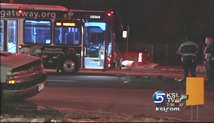 SALT LAKE CITY -- Police have arrested a woman on suspicion of drunk driving after she drove right into an oncoming UTA bus. Salt Lake City police Lt. Craig Gleason said it happened near 800 West and 750 North around 6 a.m. Wednesday.