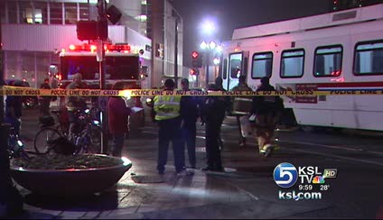 Utah Transit Authority officials say the man was a riding in between two cars on a TRAX train. As his train was passing another train, which was going in the opposite direction, he either attempted to jump or fell.