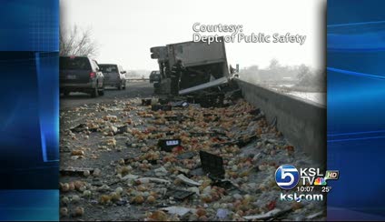 Utah Highway Patrol troopers said the truck was heading south on Interstate 15. When the driver exited to get on eastbound Interstate 84, the trailer tipped over, scattering the onions in the right lane.