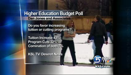 The Deseret News/KSL-TV survey of 419 residents was conducted statewide last week by Dan Jones and Associates. It found 43 percent definitely or probably support raising tuition, while 32 percent say the state should definitely or probably cut programs.