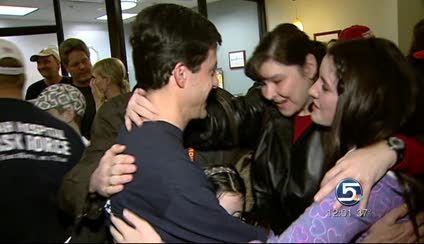 Cheers rang through the Million Air terminal at Salt Lake International Airport just after 7 a.m. as family and friends welcomed the group home.