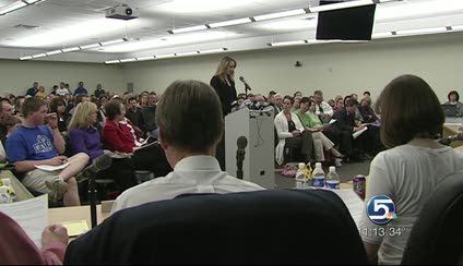 "We've never had anyone come to our meetings -- a few teachers here and there -- so I worry that everyone is here after the decision has been made," said Jordan School District spokeswoman Melinda Colton.