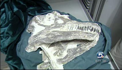 BYU paleontologist Brooks Britt showed off the discovery of the rare skulls; scientists call the new species of dinosaur an Abydosauraus.