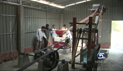 "New rice machine; the farmer come here, and testing, and [I] feel that the rice that come out is very good," Oum Sok said through a translator.