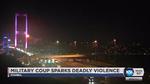 Fighter jets buzzed overhead, gunfire erupted outside military headquarters and vehicles blocked two major bridges in Istanbul. Soldiers backed by tanks blocked entry to Istanbul's airport for a couple of hours before being overtaken by pro-government crowds carrying Turkish flags, according to footage broadcast by the Dogan news agency.