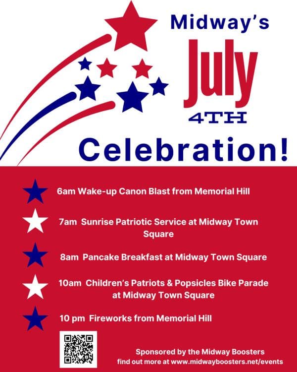 Join Us for Our Annual July 4th Celebration! Get ready for a day filled with fun, food, and fireworks as we come together to celebrate Independence Day! This event is sponsored by the Midway Boosters.
