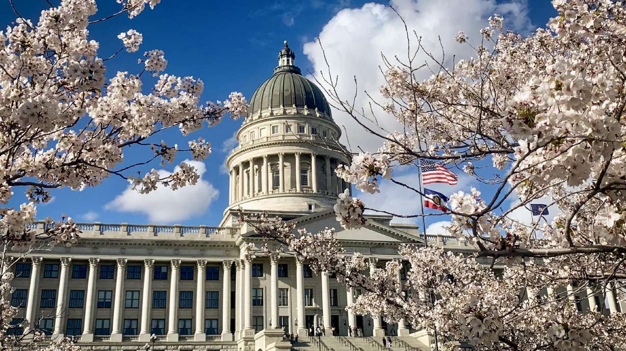 “Framed in Spring”: Yoshino Cherry Blossoms at the Historic Utah State Capitol Building, (4/7/24)- Photo Submitted by Gordon Swensen